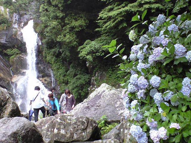 この滝は「見帰りの滝」または「見返りの滝」と言われていて、佐賀県内最大の滝で、日本の滝百選に選ばれています。滝の周辺はあじさいの名所としても知られているそうですよ。